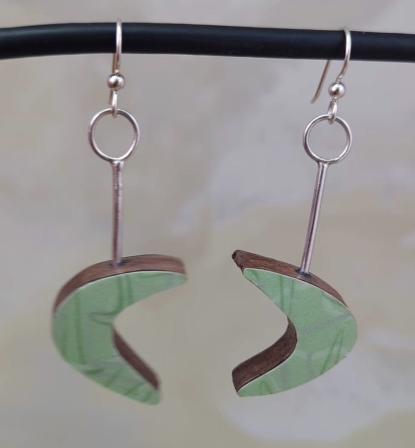 - Back of earrings are covered with a laminate chosen to complement the boomerang pattern