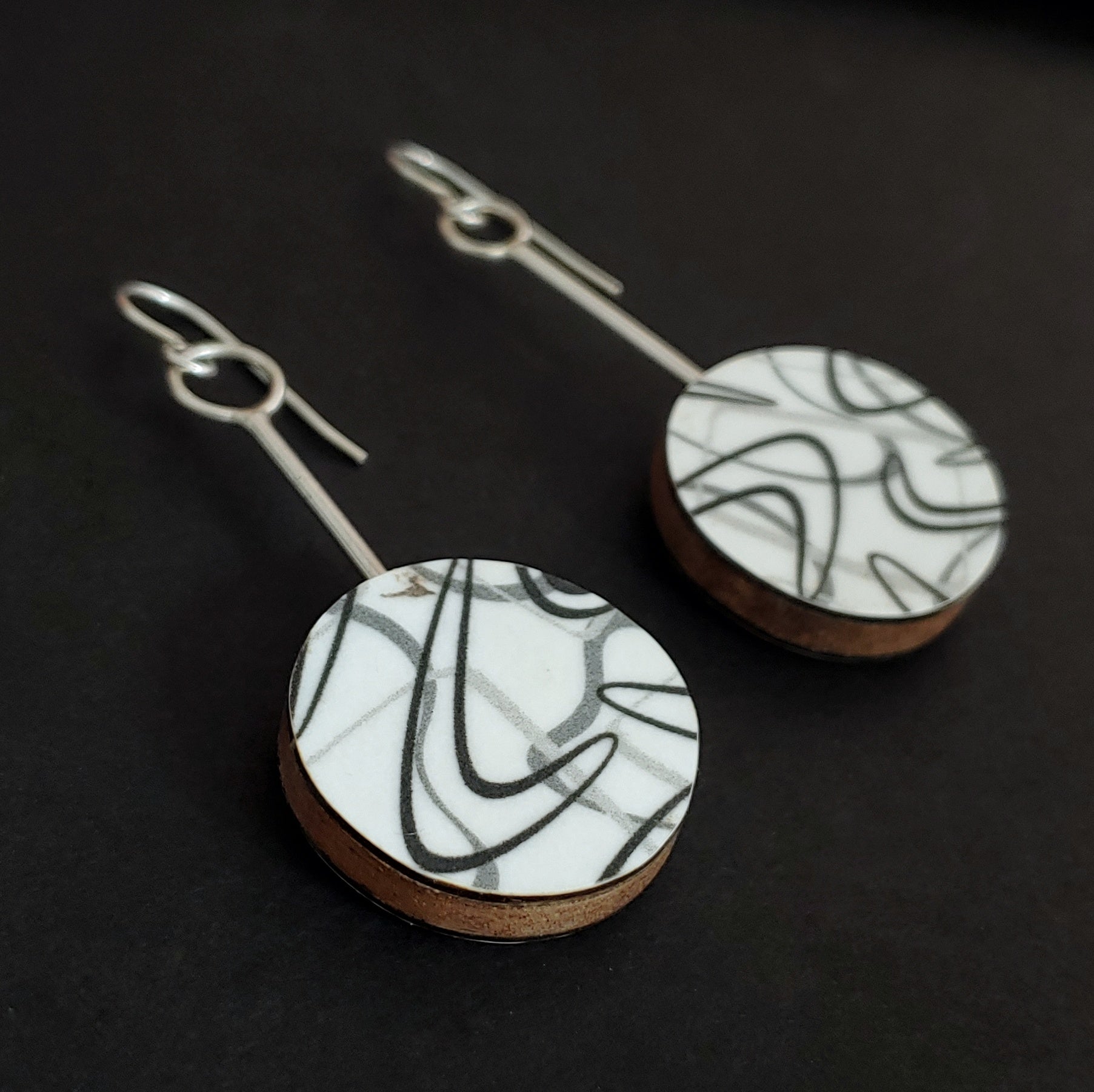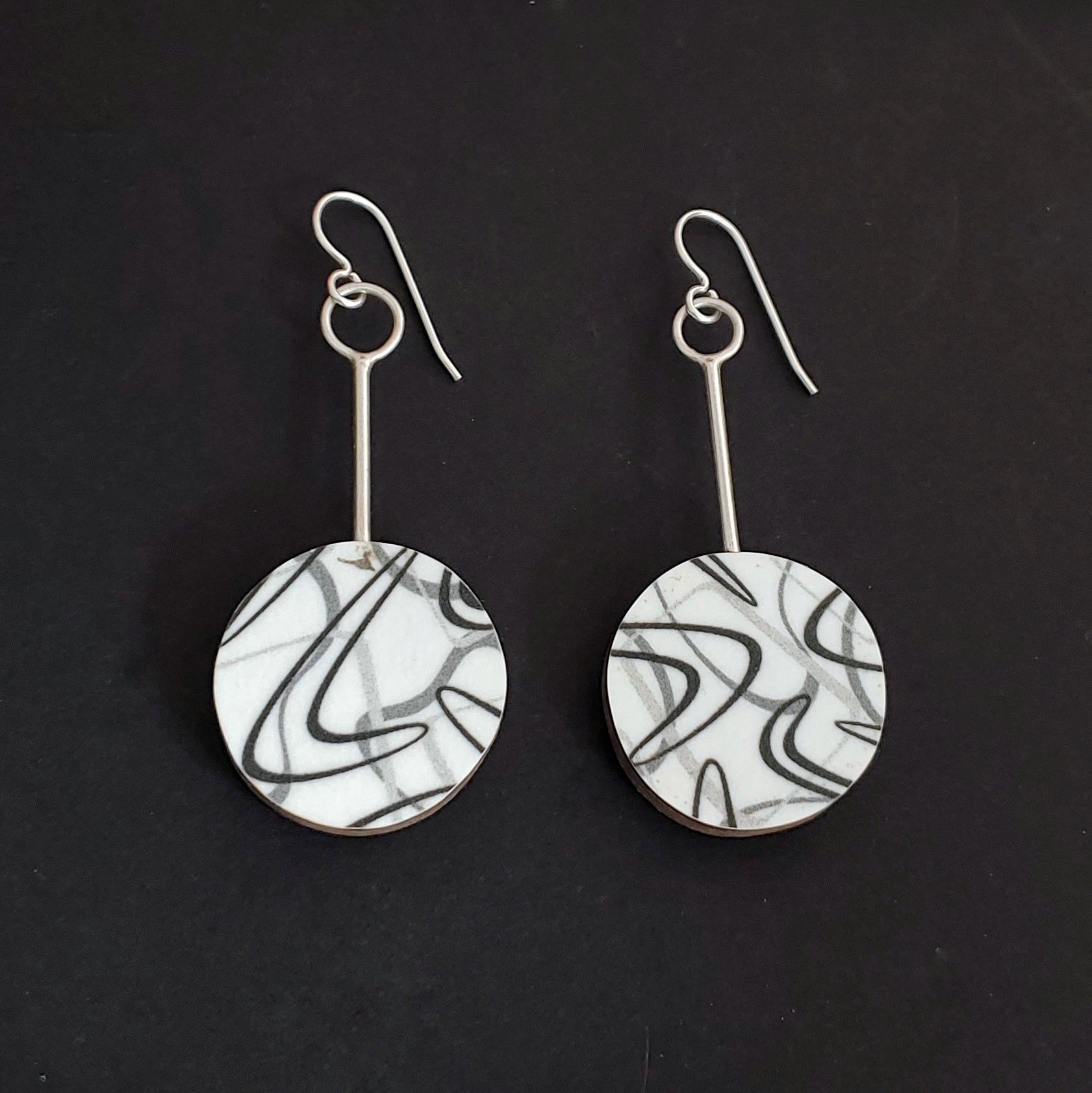 Boomerang Laminate Round Earrings - White/Black