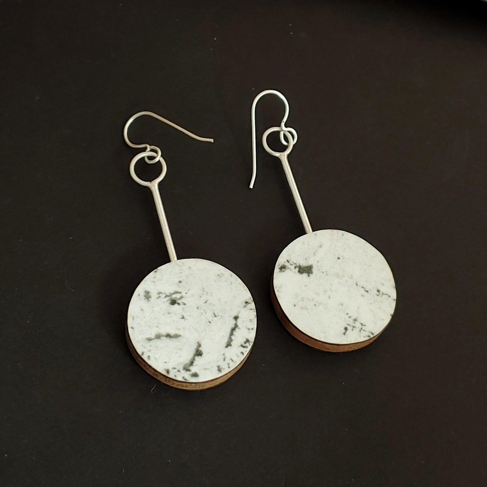 - Earrings dangle 2" and hang on sterling silver wires
