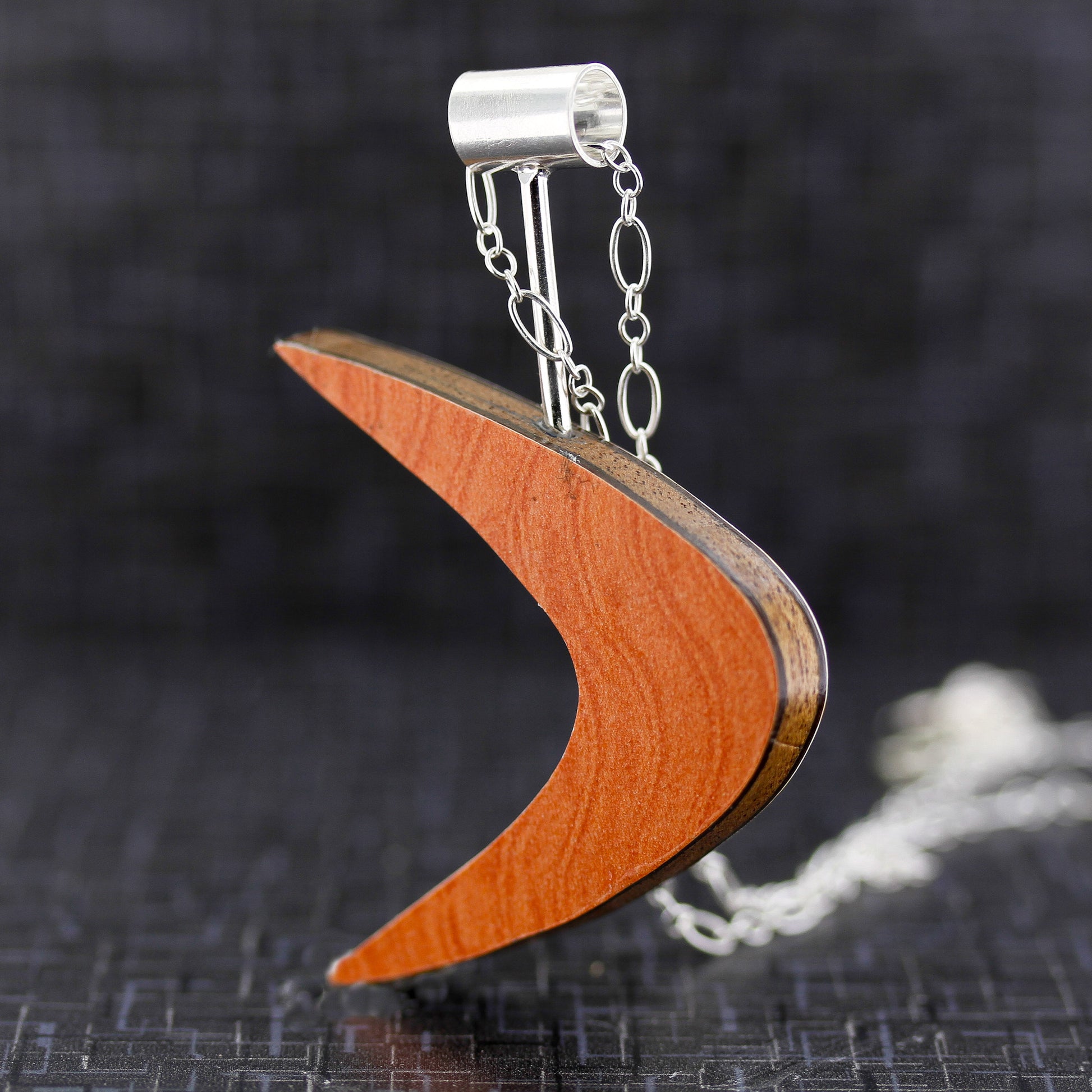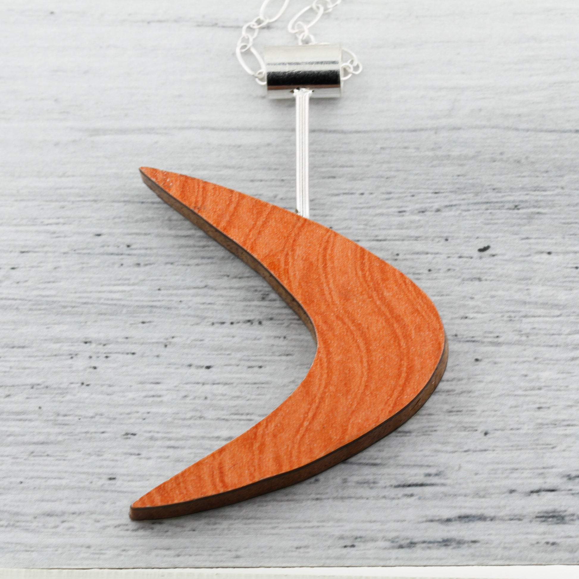 Boomerang Shaped Reversible Laminate Necklace - Orange/Yellow/Brown