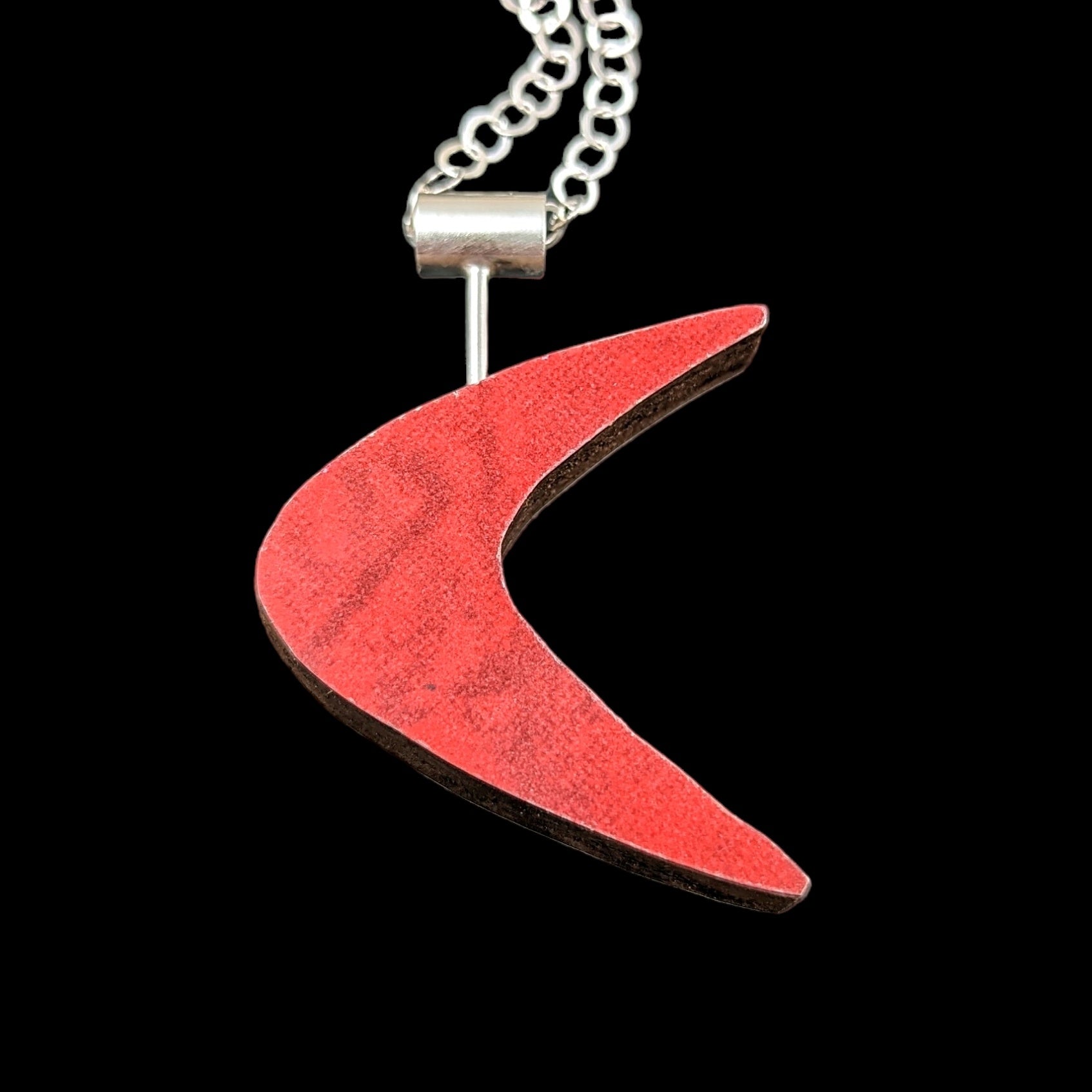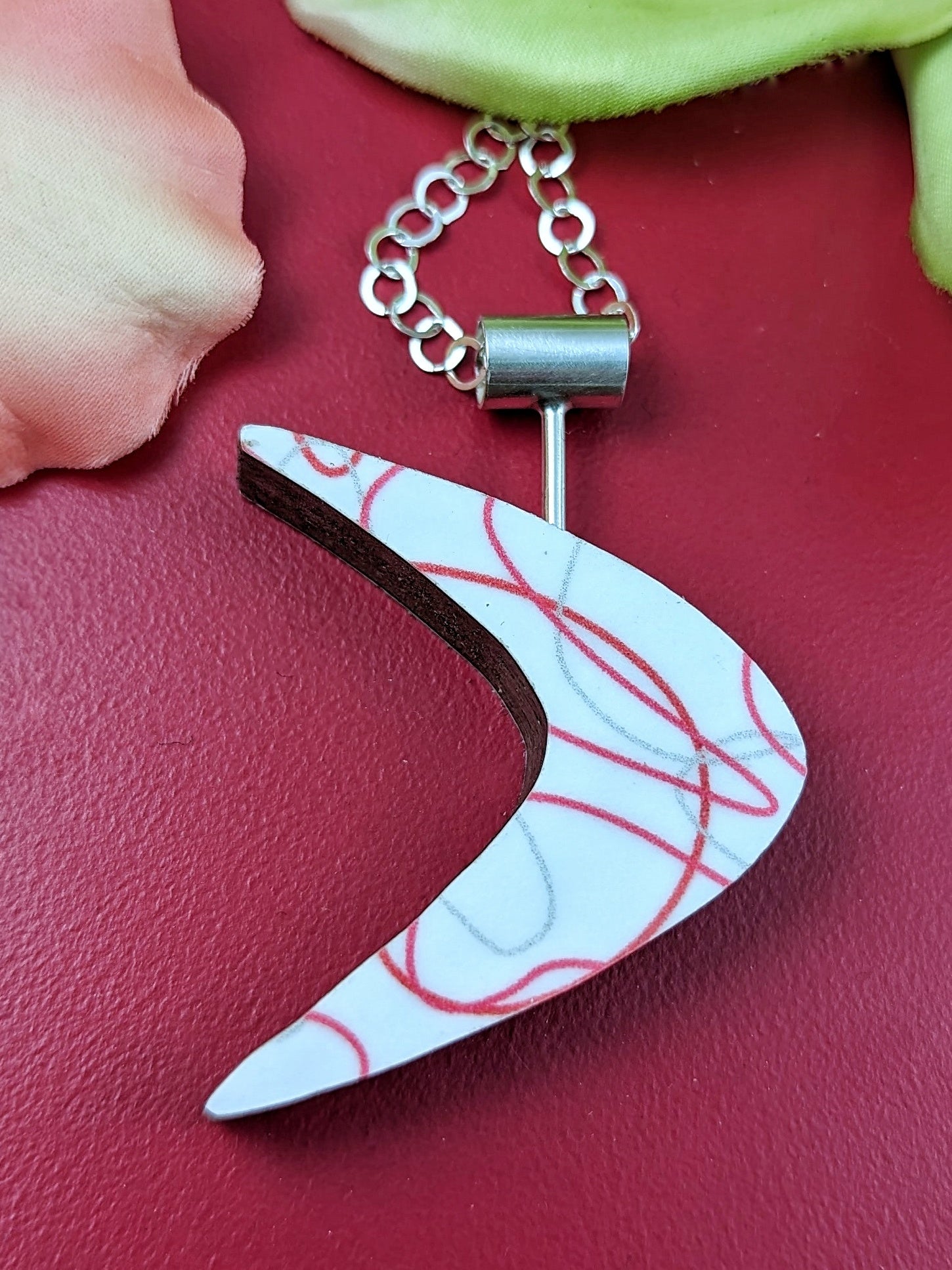 Boomerang Shaped Reversible Laminate Necklace - Red/White