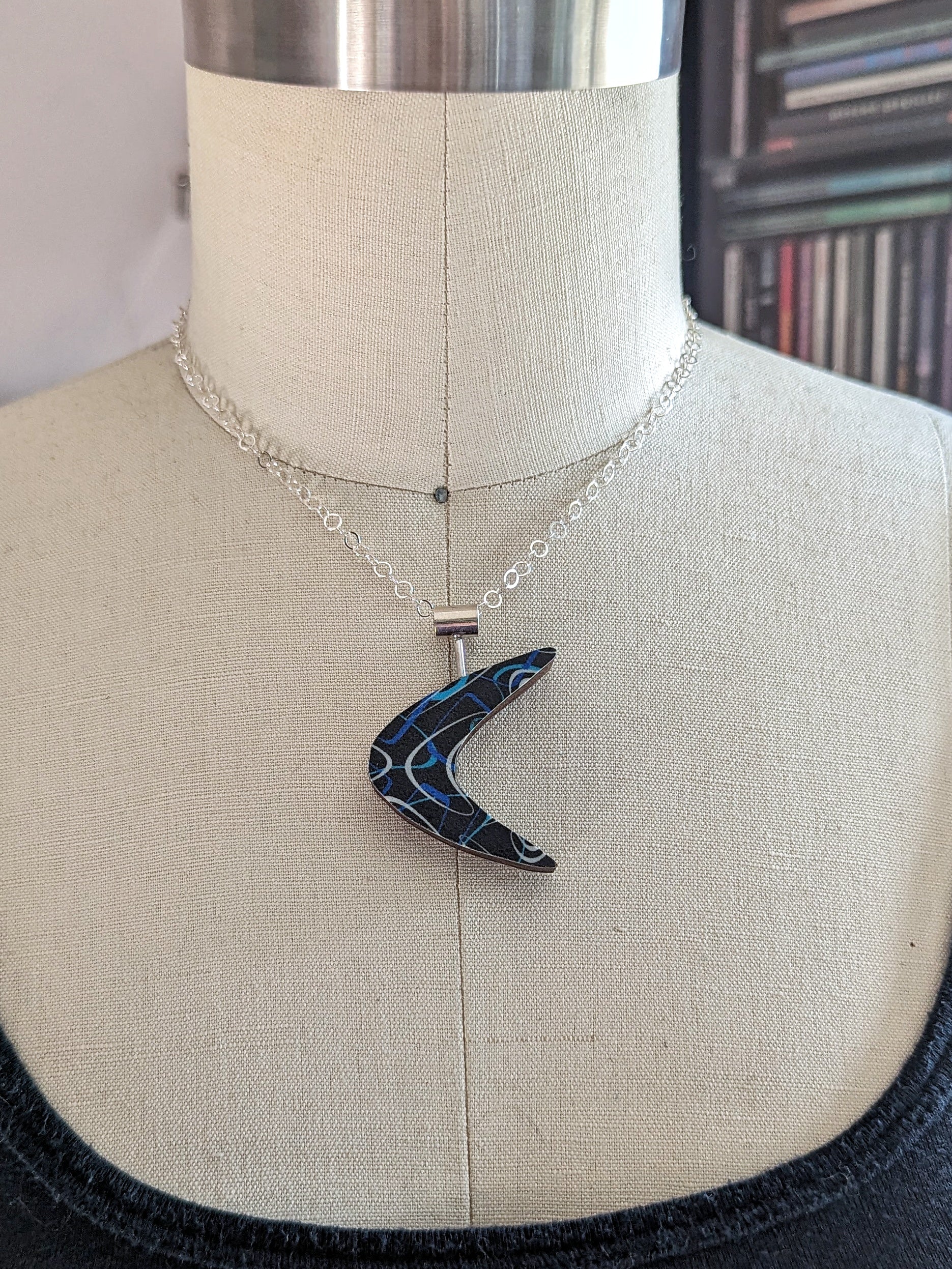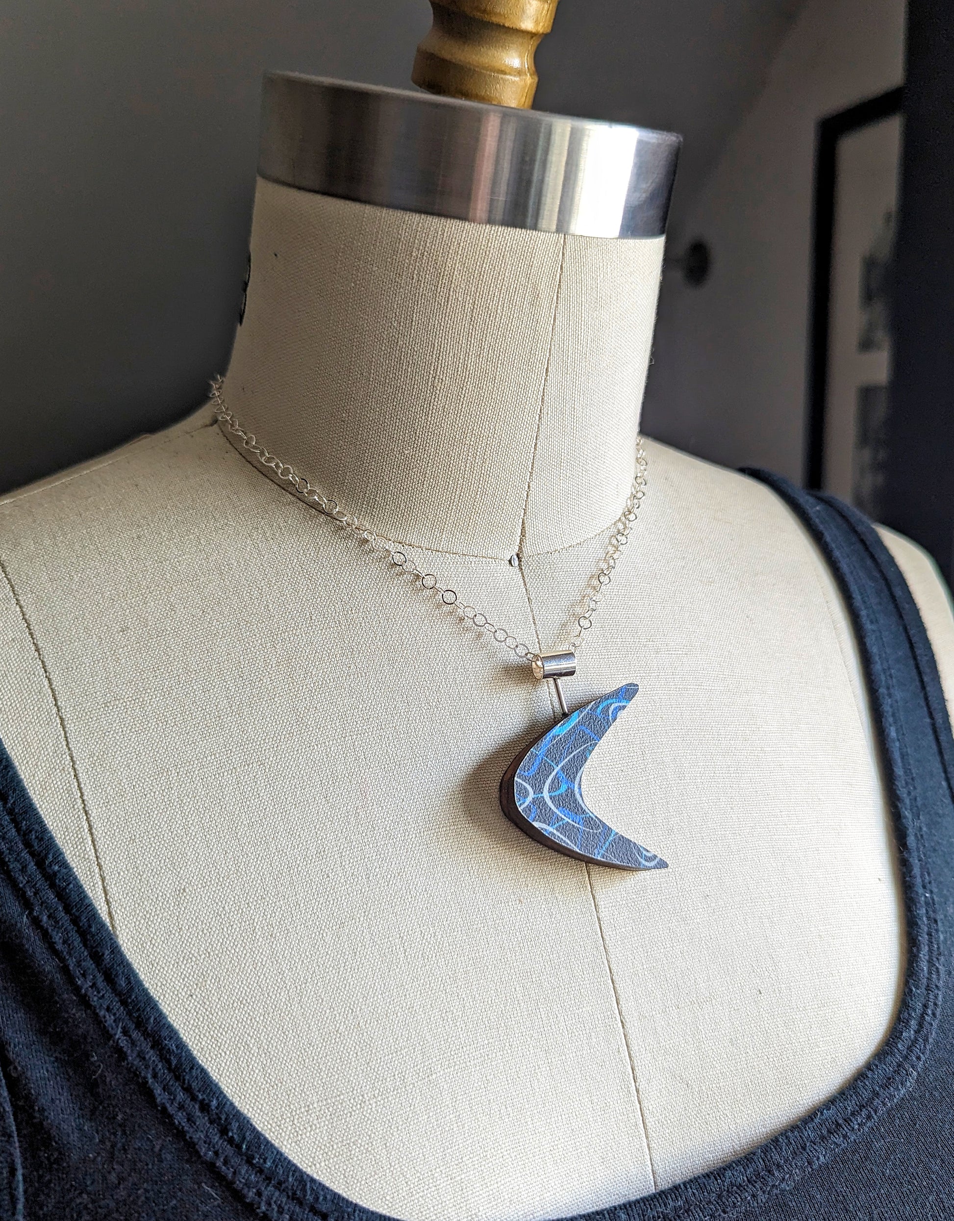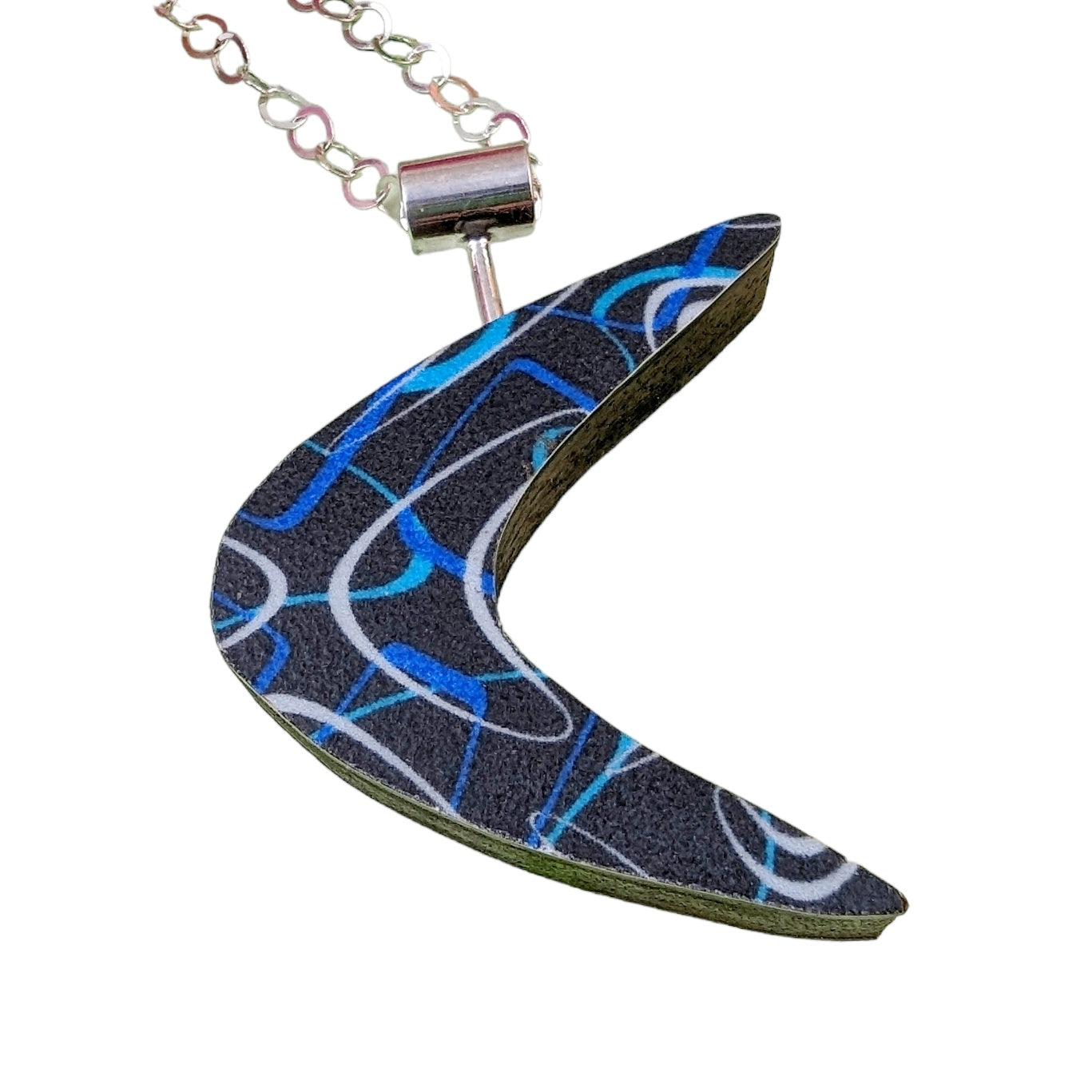 Boomerang Shaped Reversible Laminate Necklace - Black/Blue