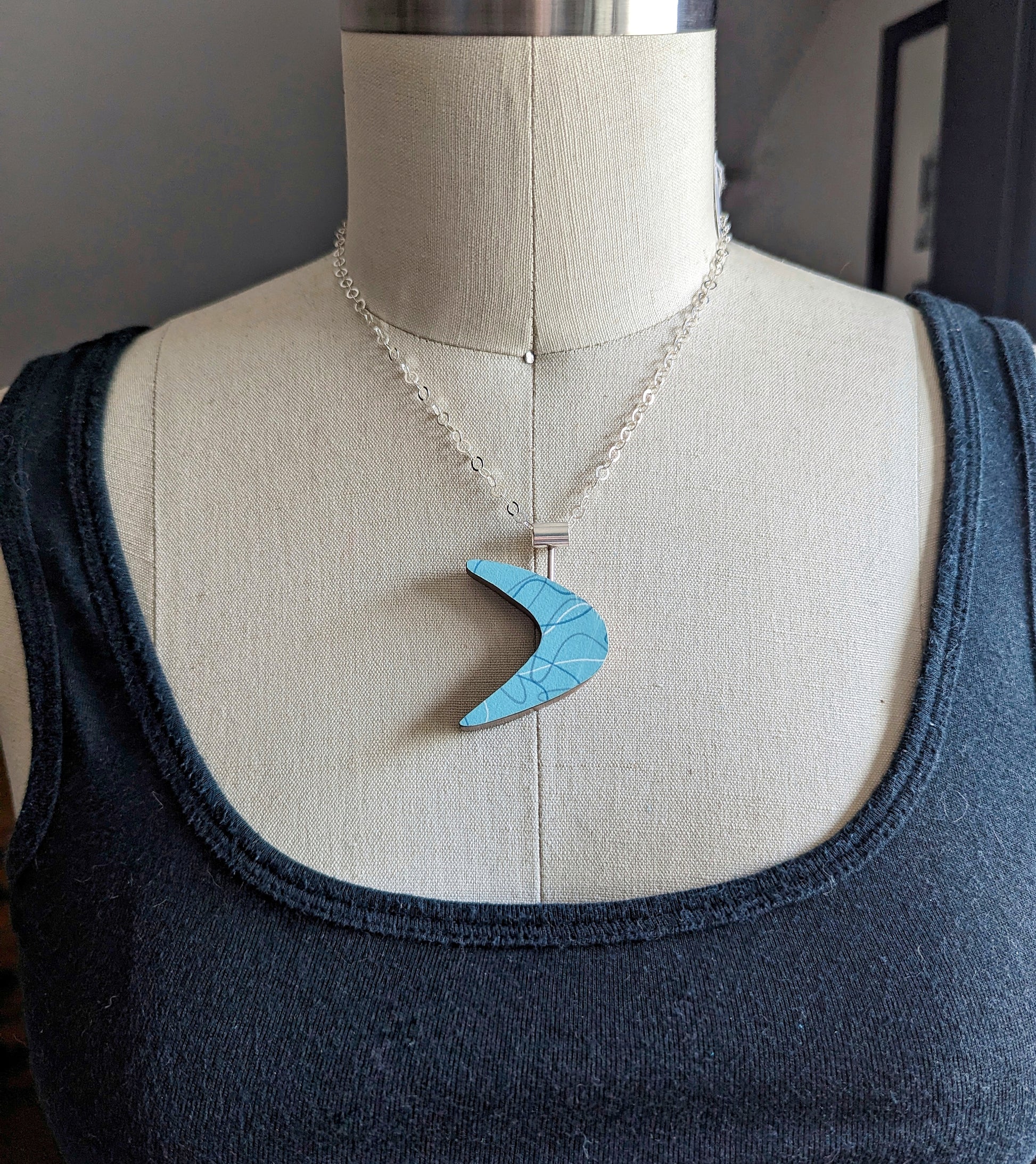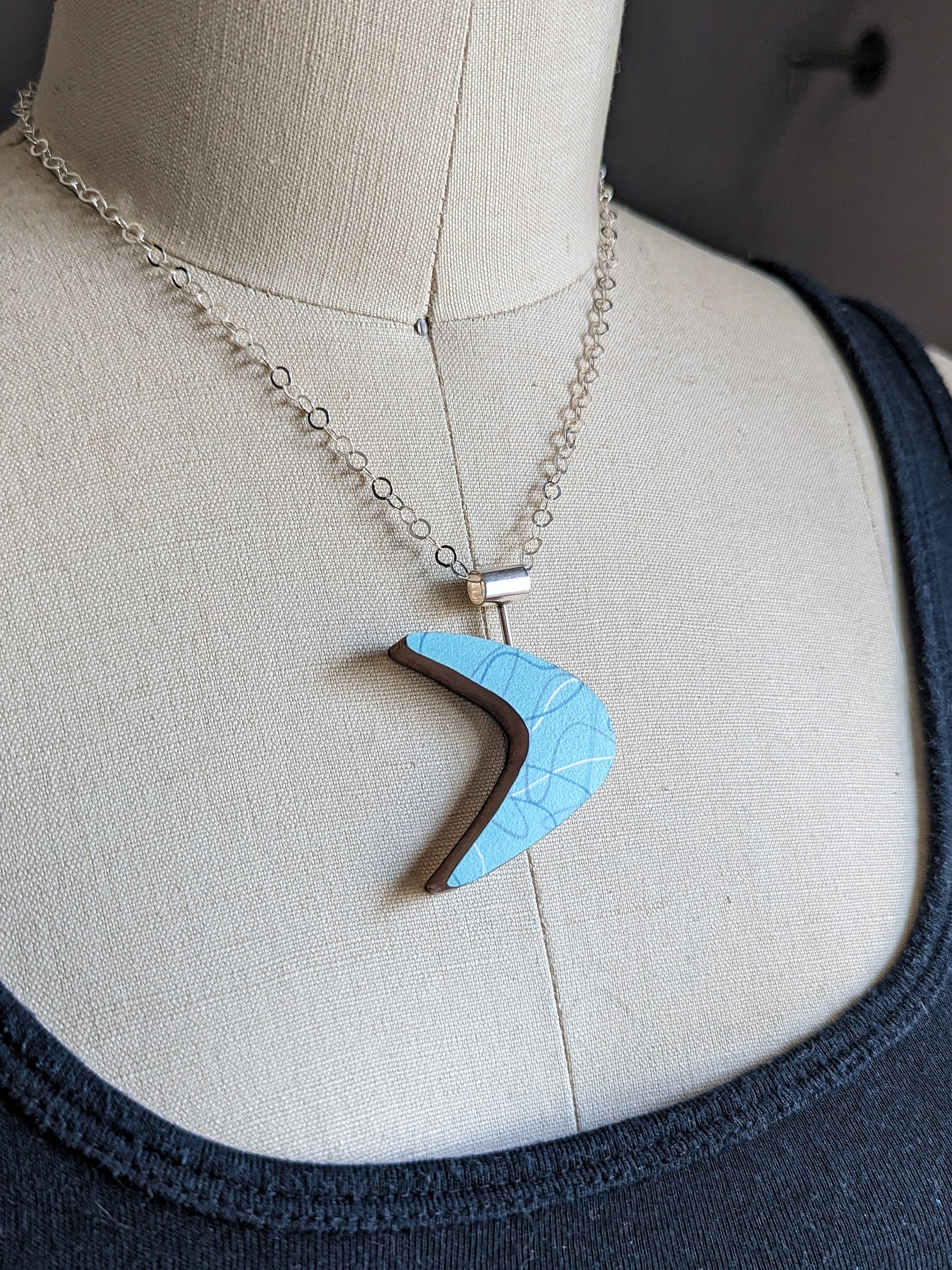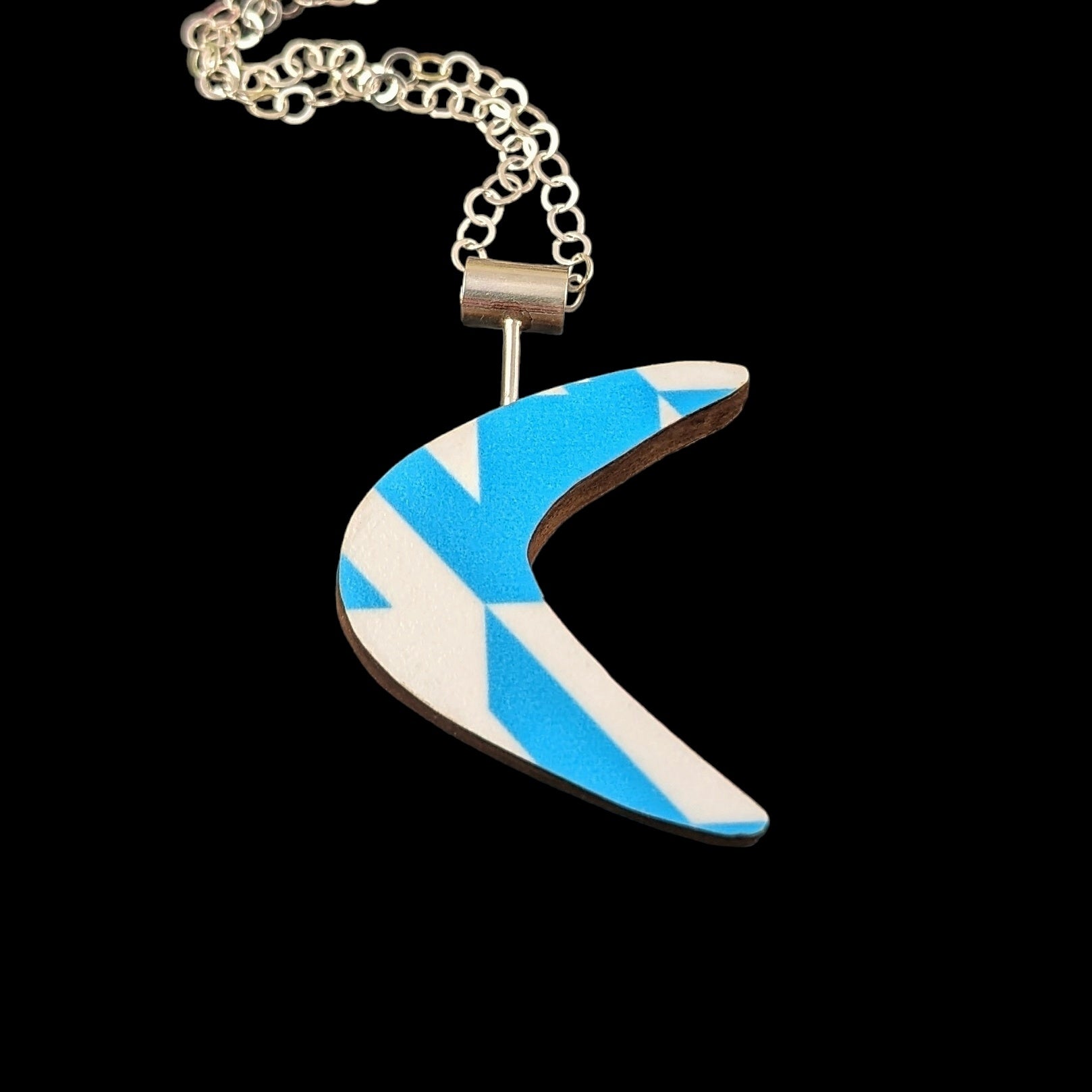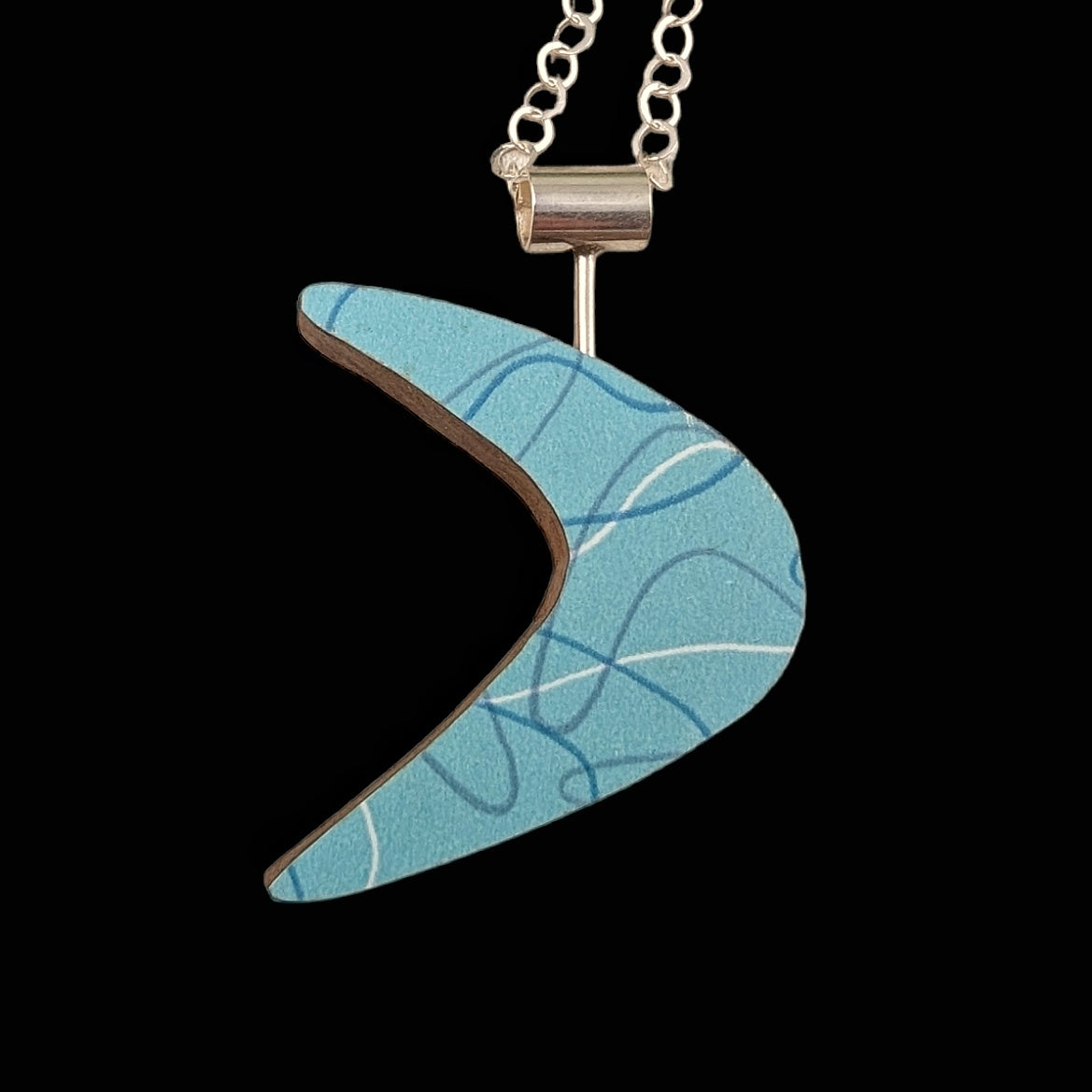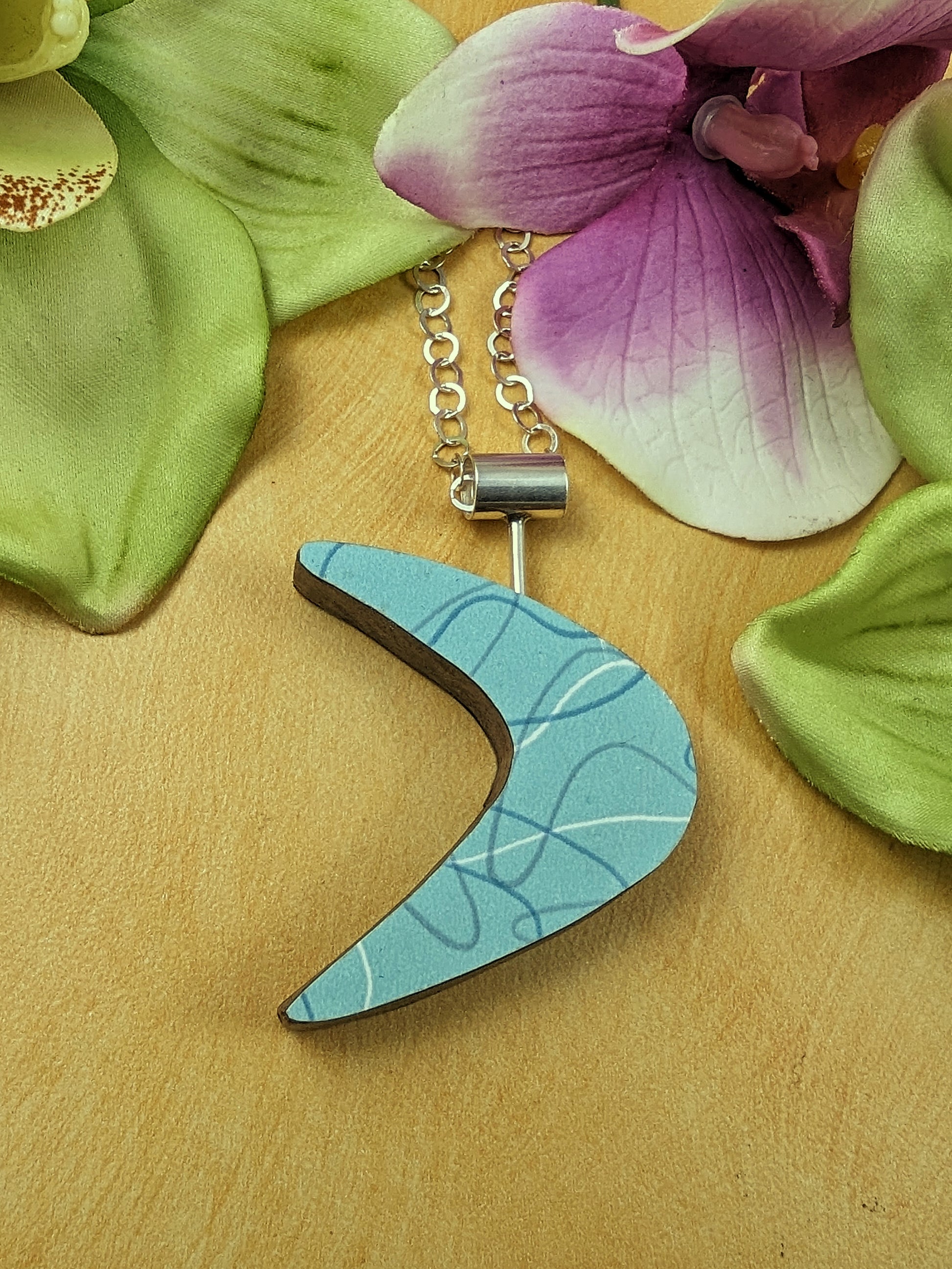 Boomerang Shaped Reversible Laminate Necklace - Light Teal